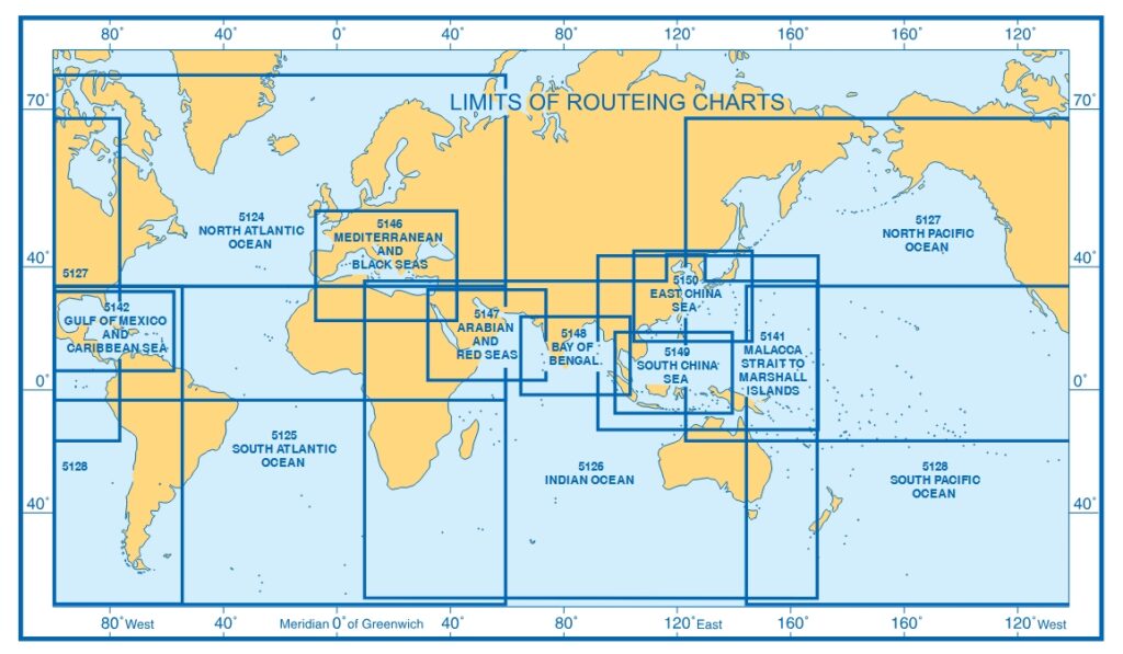 Dit standaardwerk bestaat sinds een paar jaar uit twee delen: Deel 1 omvat de Atlantische Oceaan en deel 2 de Indische en Stille Oceaan. Daarnaast produceert de Admiralty routekaarten voor alle maanden en alle oceanen. Ocean Passages en Admiralty Routeing Charts zijn verkrijgbaar bij de agenten van de British Admiralty, in Nederland zijn dat bijvoorbeeld Datema Delfzijl en Harri Trading in Rotterdam.