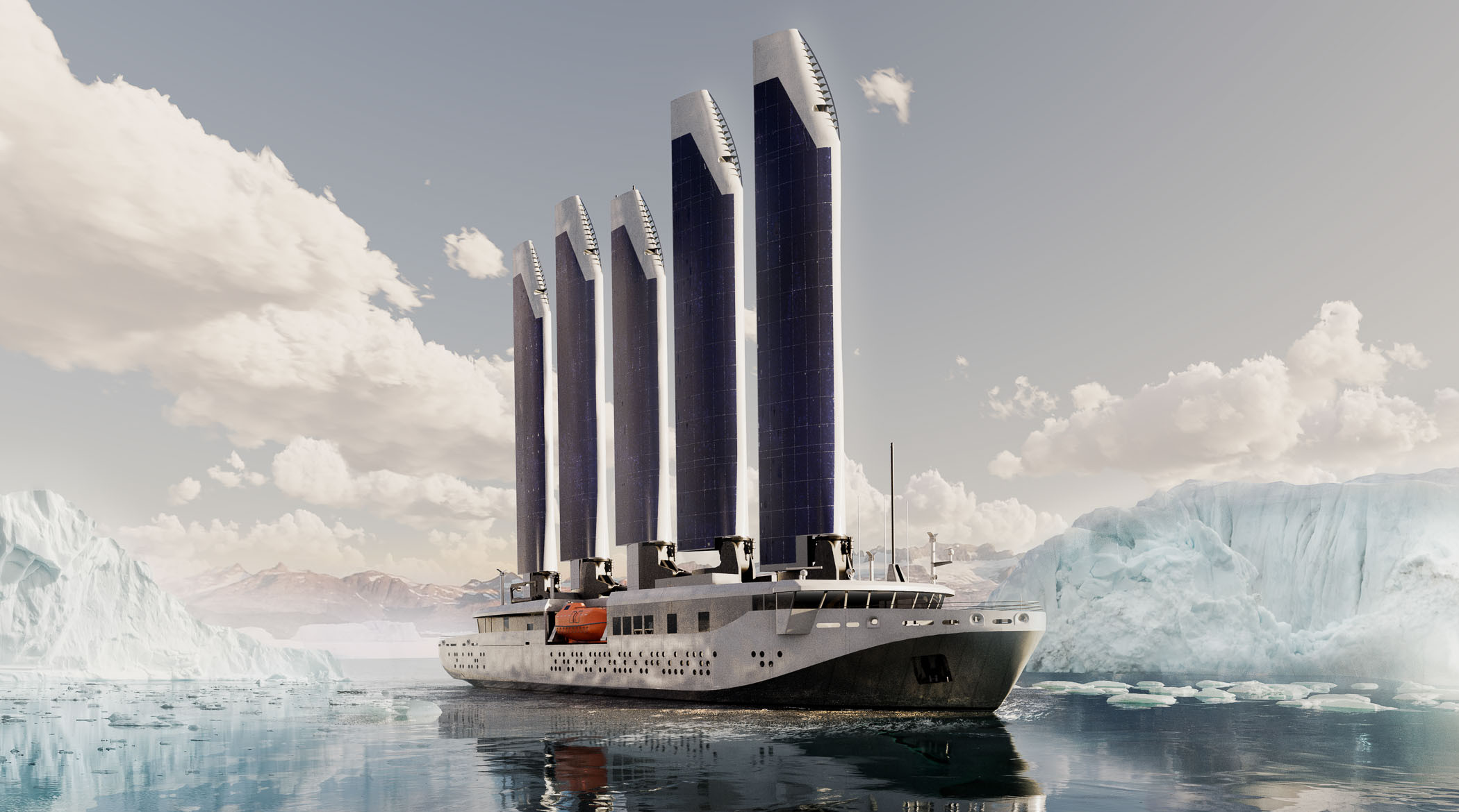 Het schip zal vrijwel energieneutraal varen met vijf 35 meter hoge aluminium zeilen, elk bedekt met 20.000 zonnepanelen. De energie daarvan wordt direct gebruikt of opgeslagen in batterijen. De zeilen kunnen worden ingetrokken wanneer ze niet nodig zijn. Door gebruik te maken van wind- en zonne-energie is het schip ook stil, wat de impact op het zeeleven minimaliseert.