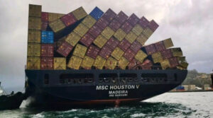 De MSC Houston V zocht op 20 maart noodgedwongen toevlucht in Vigo, nadat het 15 containers verloor. Storm en containerschepen blijven een slechte combinatie. Strengere regels liggen voor de hand, maar de IMO staat machteloos.