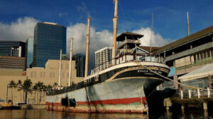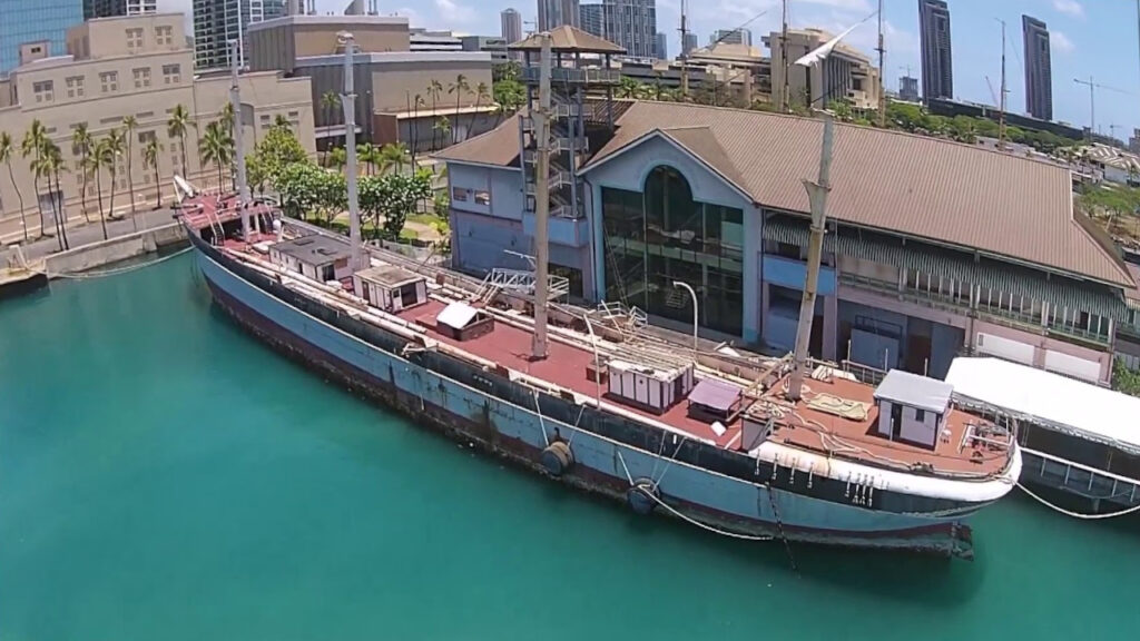 It was first brought to Hawaii for restoration in 1963 and spent its final years docked at Pier 7, where it once served as a museum ship as part of the Hawaii Maritime Centre. The centre closed in 2009 and after the owner defaulted by not moving the ship, it was seized in 2016 when its licence was revoked.