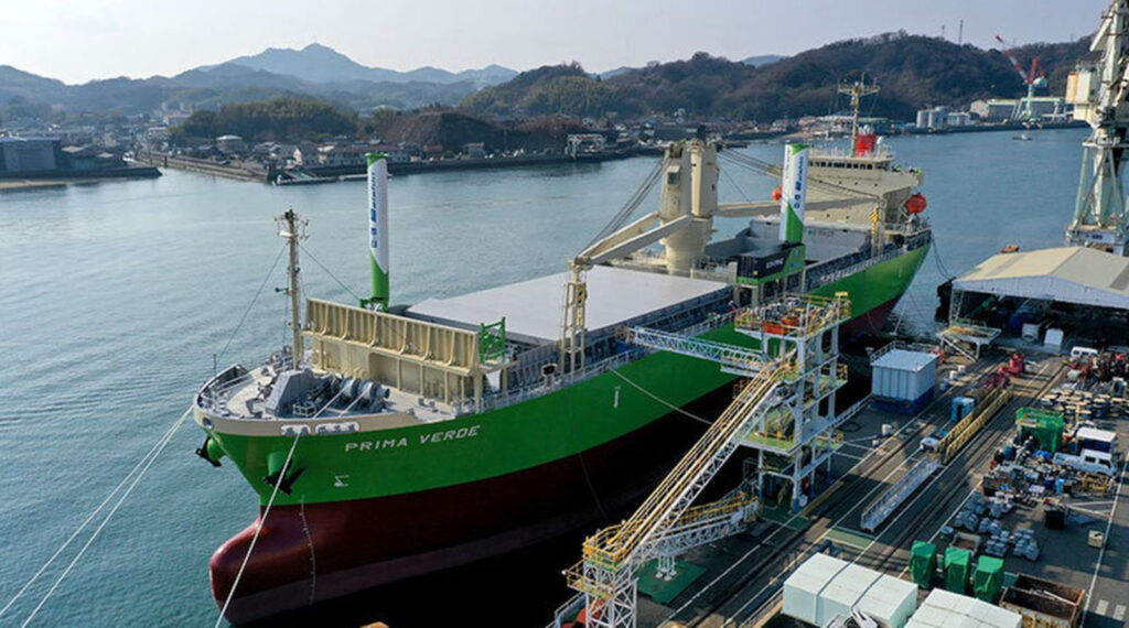 Mitsui O.S.K. Lines (MOL) has announced the delivery of the multi-purpose vessel Prima Verde. The vessel, operated by MOL Drybulk and owned by Daishin Shipping, was built at Onomichi Dockyard. According to MOL, the Prima Verde has several eco-friendly features and is the first ship of any type to use “green steel”1. It is also equipped with an engine that can run exclusively on marine gas oil (MGO) and a wind-assisted propulsion system.