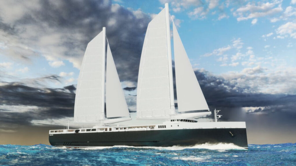 Neoliner Origin has two types of propulsion systems: sails and a mechanical propeller. The latter consists of an adjustable pitch propeller coupled to a PTI/PTO gearbox linked to an ABC diesel engine with an average speed of 3,200 kW and an electric motor of 900 kW. This allows the powertrain to operate efficiently in any configuration and allows future integration of batteries. So there are three sailing modes: sailing only, mechanical propulsion (mainly for manoeuvring) and hybrid.