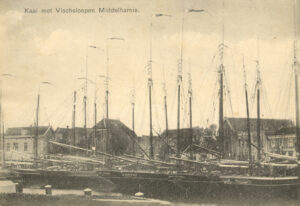 The so-called ‘big fishery’ consisted of herring fishing and longlining. The herring fishery was carried out with the fish cutter and the herring ‘buis’, and later with luggers, a ship type derived from the French lougre. During the herring season, these sailed to sea and moored to the vleet, a long, large fine-mesh net in which the herring swam. Outside the herring season, the ships were laid up.