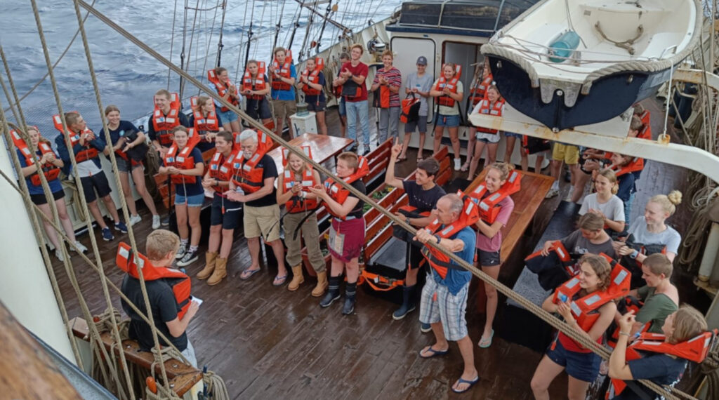 Then everyone started looking forward to the ship takeover, which is scheduled at the end of the crossing. We all then have to apply for a position on the boat. With a good application letter, everyone walked into the wheelhouse tense. You were properly interviewed and it certainly aroused a jet of anxiety. As the final 300 nautical miles drew near, the positions were divided. The future captain soon went to work and was still racking his brains until late to make the watch groups. When the ship takeover began, everyone was eager. The watches flew by smoothly and the helmsmen did a good job. The activities were also fun. For instance, we had movie nights, a pub quiz (with prize of course) and creabea morning. The kitchen service was all over the place, bringing delicious dishes to the middle deck. The captain was all about us and didn’t mind being woken up in the middle of the night either. The helmsmen took us perfectly past all the squalls around Dominica and of course we must not forget the sailors either, as they hoisted all the sails.