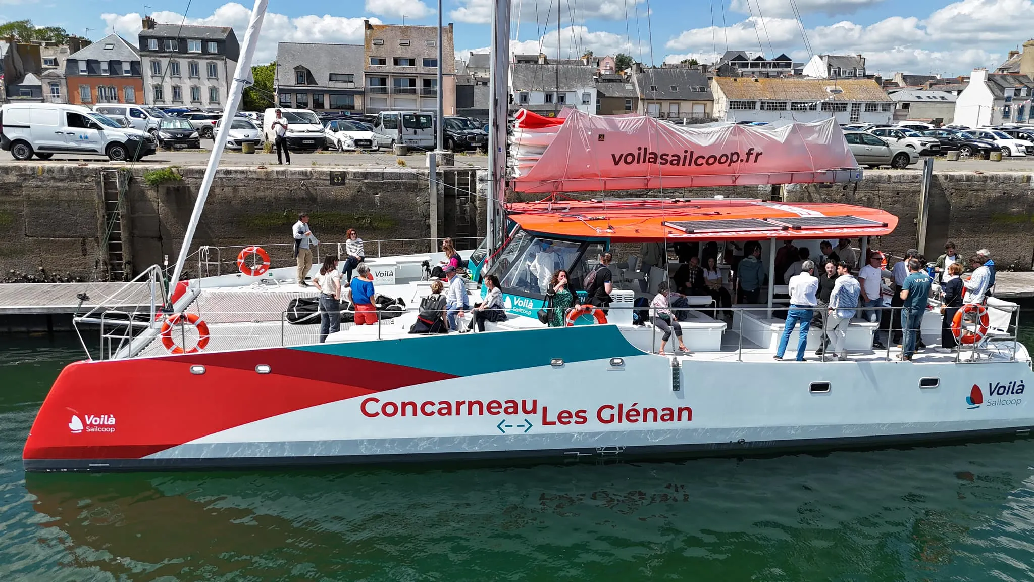 French maritime passenger transport cooperation Sailcoop launched its first fixed short-distance service from Concarneau in Brittany to the Les Glénan archipelago on 15 June 2024 with a sailing catamaran for 80 passengers.
