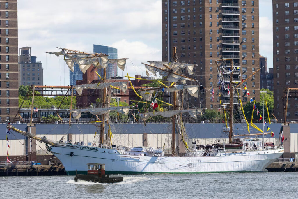 Het schip lag aangemeerd aan Pier 17 in Manhattan, net onder de Brooklyn Bridge. Zaterdagavond zou het de haven van New York verlaten, met een bunkerstop aan de waterkant van Brooklyn. Een sleepboot was ter assistentie aanwezig, met als taak de boeg van de kant te helpen duwen, maar zonder aan de Cuauhtémoc te zijn vastgemaakt. In plaats van zuidwaarts voer de Cuauhtémoc omstreeks 20.30 uur in de verkeerde richting.