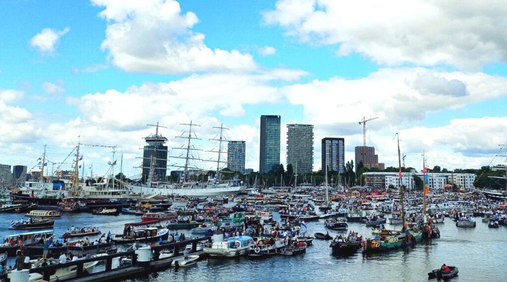 Op de slotdag van Sail voeren de historische zeilschepen nog een laatste ereronde op het IJ: het Admiraalzeilen.