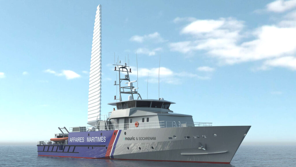 Het Franse Directoraat-Generaal voor Maritieme Zaken, Visserij en Aquacultuur (DGAMPA) hakte eind 2024 de knoop door, en gaf het consortium SOCARENAM-MAURIC opdracht voor het ontwerp en de bouw van een offshore patrouillevaartuig (OPV) dat een hybride aandrijving met windzeilen krijgt.