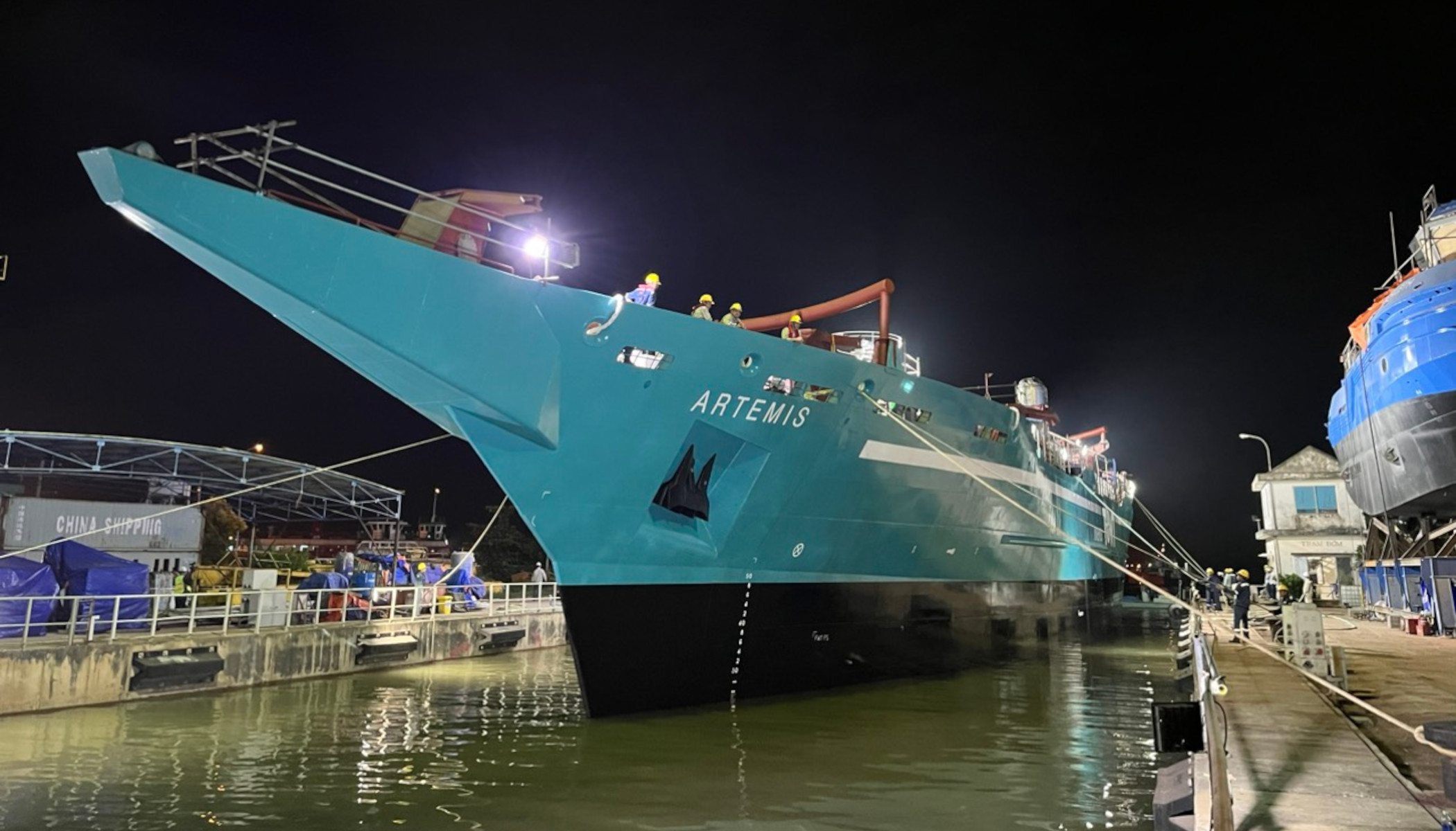 De “Artemis”, grotendeels gebouwd op de X51-werf van PIRIOU in Vietnam, bestaat voor een derde uit Franse onderdelen, wat de internationale samenwerking bij de ontwikkeling weerspiegelt. Het schip werd op 20 augustus 2024 opgeleverd in Ho Chi Minh City, van waaruit het zich voorbereidt op zijn eerste reis in de Indische Oceaan, met producten als thee, koffie en technologische apparatuur aan boord. Op onderstaande video is o.a. te zien dat het schip te water wordt gelaten.